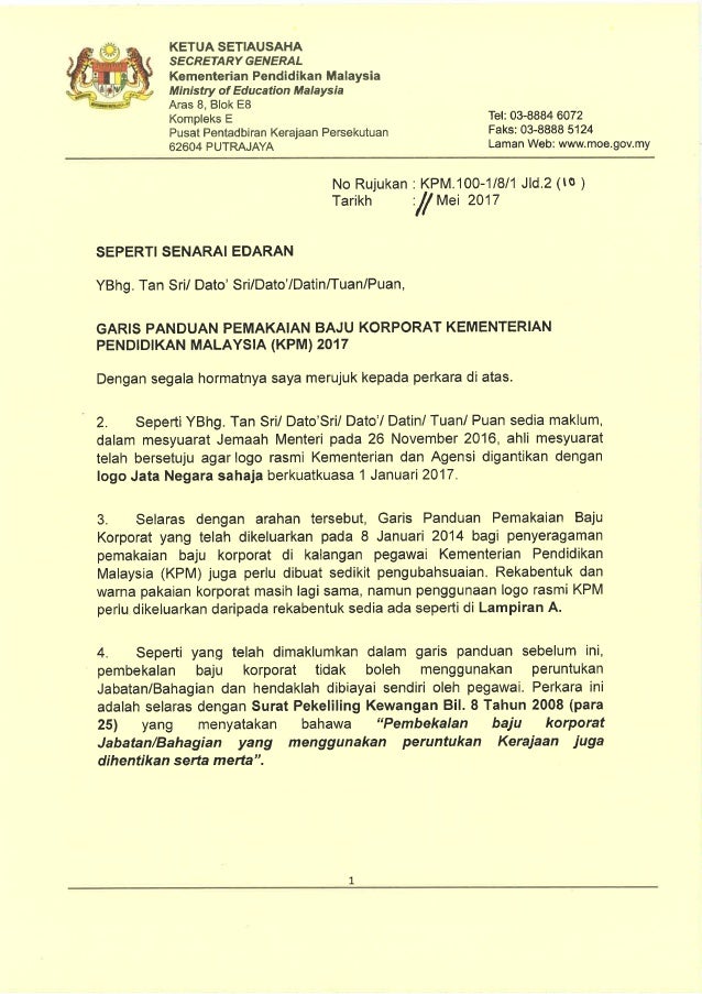 Garis Panduan Pemakaian Baju Korporat Kementerian Pendidikan Malaysia 2017